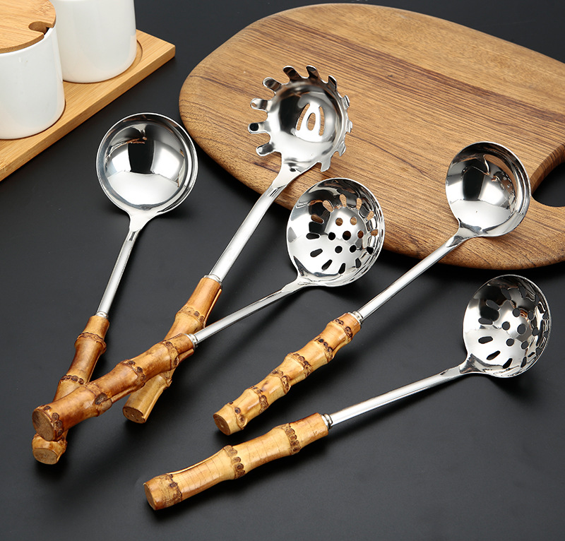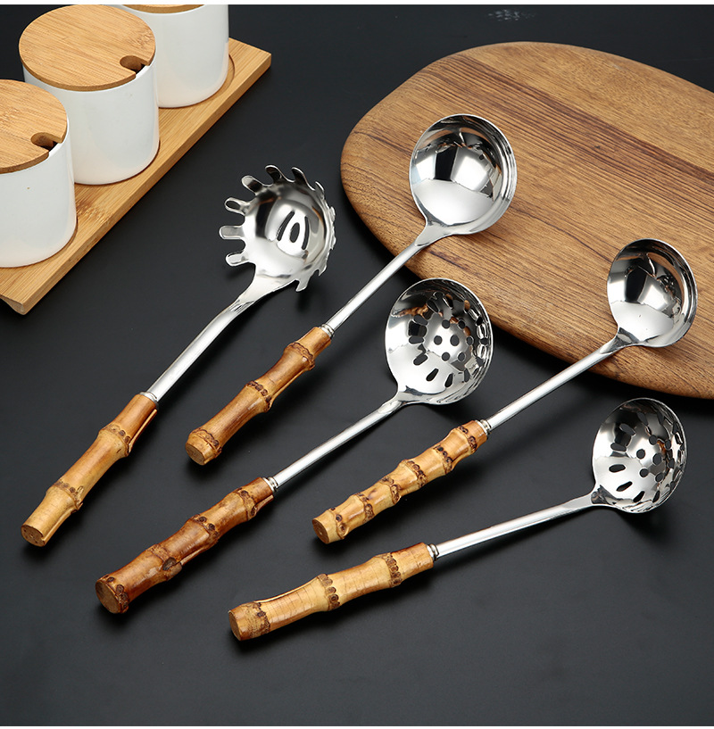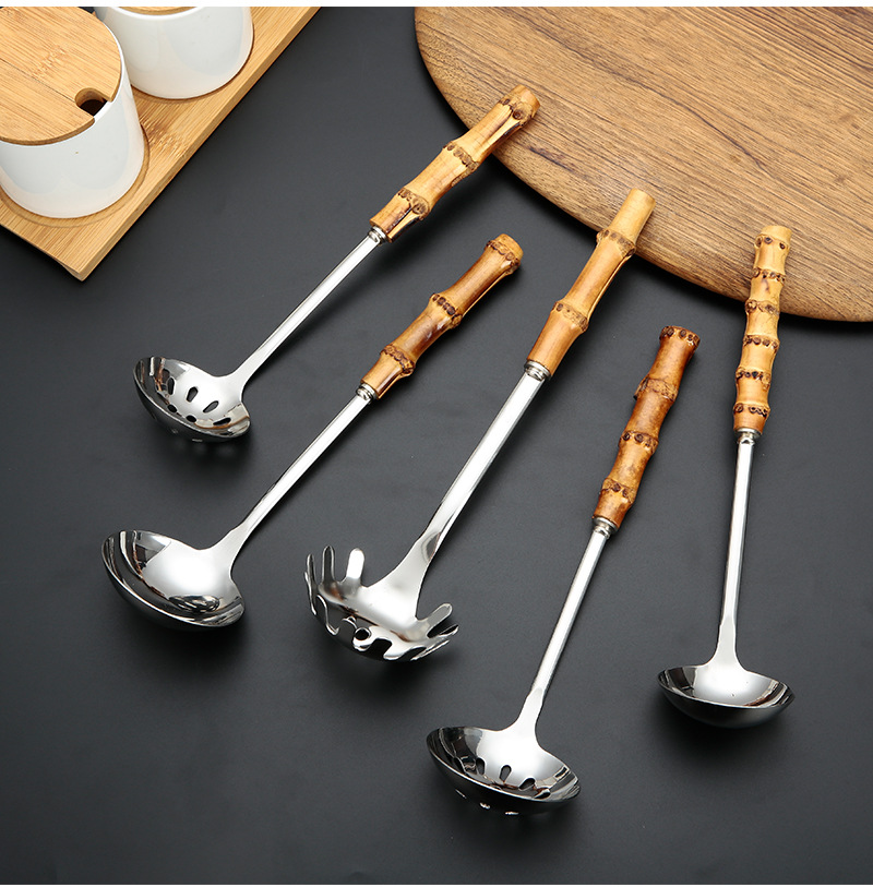 Stainless Steel Kitchen Utensil Set with Bamboo Handles